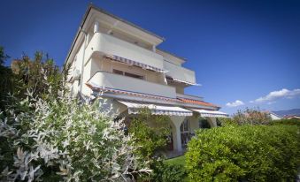 Our new and modern apartments are surrounded by greenery and typical Mediterranean plants such as tamarisk, oleander, pomegranate tree, olive tree, mimosa. On the first floor are the other two apartments. Each of them has a private balcony with a magnificent view of the sea and the bay of Soline. The apartment house is 500 meters from the sea.