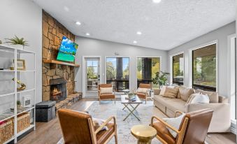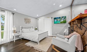 Beautiful fully remodeled home with great style and good for big groups. A nice place to enjoy the scenery and relax. Vacation home on 22 acres. Beautiful forest and a short walk to the lake, where you can go fishing or just enjoy the view. Huge deck with beautiful views. Backyard space, fire pit. One level home and wheelchair accessible. Plenty of parking on the property. RV parking onsite. Covered parking or use for basketball games. 3 car garage has a ping pong table to play.