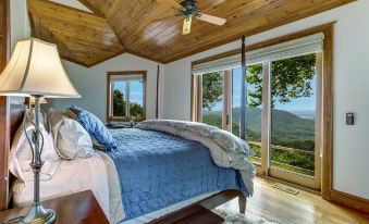 Sunrise to Sunset is a private estate situated on 16+ acres offering panoramic mountain and valley views, as well as views of Lake Chatuge! The home features 5 total bedrooms including an oversized master suite, complete with its own sitting area and ensuite bathroom with tumbled marble floors. All other bedrooms are equipped with king or queen beds and private baths, making it a perfect getaway retreat for adult couples, an extended summer escape, or corporate retreats for business professionals.