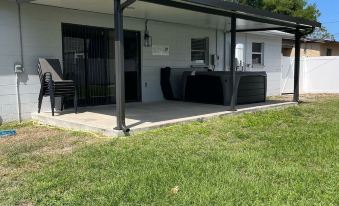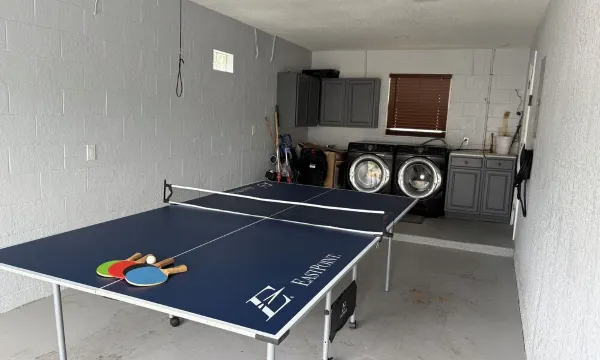Modern beach-style home just 15 mins from Port Canaveral and 20 mins from Cocoa Beach! Enjoy a private hot tub, fire pit with string lights, ping pong table, and a Tesla EV charger—perfect for families and pre-cruise stays. Relax in a coastal-themed space with fast Wi-Fi, full kitchen, and more. Close to beaches, restaurants, and Kennedy Space Center. Your perfect Cocoa getaway starts here!About pets:No pets allowed.About checkOut:Check out before 11:00 AM.About children:Children allowed: ages 0-17.About checkIn:Check in after 4:00 PM.About smoking:Smoking is not permitted.About minBookingAge:Minimum age to rent: 18.About events:No events allowed.