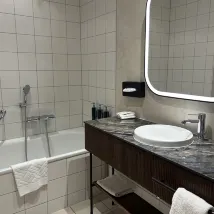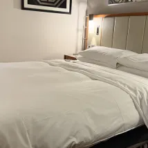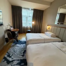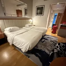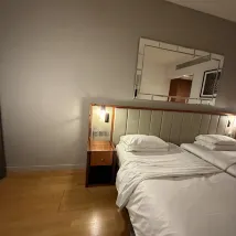 One night stay so all good with close to station. Room very small so bed was very small. Smallest double bed we got in our 5 weeks Europe trip.