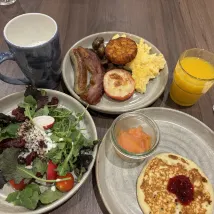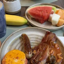 Breakfast was good and that’s why we booked so not disappointed. Got room early so we got more time to walk around town. Fruits and water at reception.