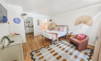 "The Botanical Suite," "The Scholar Suite," "The Tiki Suite," "The Venturi Suite," and "The Flamingo Suite" are all located next door, ideal for those traveling with friends who require extra space and separation while maintaining excellent proximity to one another. Reach out to us to check availability!