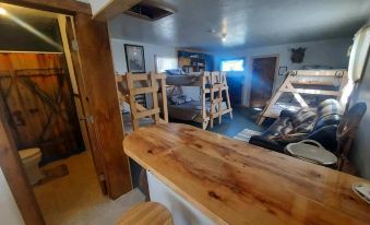 Taste the 1800s In our western school house and do the environment a favor! Our Ranch runs on solar and we try to make other environment friendly choices whenever possible. Cowboy bunk-house style sleeping arrangement with 6 bunk beds. Inviting kitchenette facility and spacious shower as well solar lighting, USB charging ports, and a propane heater.