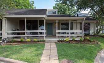 The front porch is the perfect place to enjoy your coffee or tea and lookout onto beautiful Lake Conroe! The spacious, shaded and fenced-in yard is perfect for guests to gather underneath the stars and play yard games! Walk towards the lake to watch the sunset or take the stairs to swim in the lake. Tie the boat in the same location to grab lunch or refill your cooler.