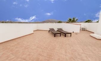 有一個壯觀的 60 平方米屋頂日光浴室,可以欣賞蘭薩羅特島和群山的景色。有一個僻靜的 50 平方米瓷磚後露台,配有燒烤設施(BBQ)。兩個露台非常私密,避風。有私人路邊停車位。