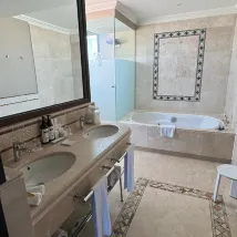 Wir (Mutter-Sohn-Kombination ) reisten Mitte Oktober anlässlich eines runden Geburtstags für eine Woche nach Corralejo – und waren vom Secrets Bahia Real in jeder Hinsicht begeistert! Von der Ankunft bis zur Abreise hat einfach alles gestimmt. Check-in & Empfang Schon beim Betreten des Hotels spürt man die herzliche Atmosphäre. Der Empfang an der Rezeption war überaus freundlich und aufmerksam. Uns wurden in Ruhe alle wichtigen Informationen zu Hotel, Restaurants und Angeboten erklärt. Auch der Hotelpage war ausgesprochen hilfsbereit und begleitete uns zu unseren Suiten, während er uns viele interessante Details über das Haus erzählte – ein wirklich gelungener Start in den Urlaub! ️ Zimmer Wir hatten eine Junior Suite Deluxe Meerblick (Erdgeschoss, Ebene 1) und eine Junior Suite mit frontalem Meerblick (1. Stock, Ebene 2). Die Deluxe-Version bietet etwas mehr Komfort – u. a. einen zusätzlichen Kleiderschrank, eine begehbare Dusche und Badewanne, ein Sofa anstelle von zwei Sesseln sowie eine großzügige Terrasse statt Balkon. Beide Zimmer waren geschmackvoll eingerichtet, sehr sauber und boten einen traumhaften Blick auf den Atlantik. ️ Verpflegung Wir hatten Halbpension gebucht und nahmen Frühstück und Abendessen im Market Café ein. Das gesamte Team – vom Empfang über die Köche bis hin zu den Kellnern – war stets freundlich, aufmerksam und mit echter Freude bei der Arbeit. Das Frühstücksbuffet ist überwältigend: große Auswahl, hervorragende Qualität und trotz hoher Auslastung keinerlei Wartezeiten. Besonders schön: Wir konnten jedes Mal im idyllischen Außenbereich (Innenhof) sitzen – morgens wie abends. Beim Abendessen wechselt das Thema täglich (TexMex, Mediterran, Kanarisch, Spanisch, Italienisch, Asiatisch, International), was für Abwechslung sorgt – auch für Vegetarier wie mich! Die Getränke werden bequem aufs Zimmer gebucht und beim Check-out bezahlt. Danach lässt sich der Abend wunderbar an der stilvollen Rendezvous Bar mit Blick auf den Atlantik, die Insel Lobos und Lanzarote ausklingen. Die dezente Livemusik im Hintergrund war immer angenehm und nie aufdringlich. ️ Poollandschaft Die Poolanlage ist wunderschön gestaltet – umgeben von blühenden Pflanzen und herrlich ruhig. Durch die geschützte Lage im Innenbereich des Hotels ist man vom Wind verschont. Die Liegen sind außergewöhnlich bequem, immer ausreichend vorhanden und inklusive Schirmen. Auch der Service am Pool war tadellos. Einzig die Wassertemperatur hätte für meinen Geschmack etwas höher sein dürfen – einer der Pools ist beheizt, der andere nicht. Lage & Umgebung Direkt gegenüber des Hotels befindet sich kein klassischer Badestrand, der Zugang erfolgt über einen Steg. Nur etwa 200 Meter rechts vom Hotel liegt jedoch eine wunderschöne kleine Bucht mit türkisfarbenem, seichtem Wasser – perfekt zum Schwimmen und Entspannen. Von dort ist man auch schnell an der hoteleigenen Strandbar. Wer weiter Richtung Süden läuft (ca. 20 Minuten), erreicht die beeindruckenden Dünen