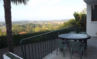 We called it 'After School'; this house built 40 years ago corresponds in all to a feeling of rest and recreation; nothing in front; that the beautiful landscape of the Gers; a tiny access street that touches it; then behind: the school playground of the village school; fully equipped with new electrical appliances; in new bedding; in new living room furniture (2 sofas and a leather pouf); built-in 82cm TNT LCD TV and new DVD player; the house overlooking the valley of the river 'Auzoue' has a breathtaking view of a rural setting of meadows and vineyards with the Pyrenees in the distance. the situation in the small village; just after school; assure you a stay in calm and comfort; two streets behind, the village bistro 'LE ON / OFF'; its brasserie restaurant and the services of its grocery store and bread depot.