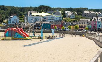 Magnificent 2-bedroom duplex flat on the top floor of the Ville d'Ys residence, with superb views of the beach and Morgat harbour.