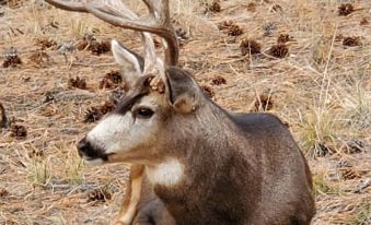 Cozy Colorado cabin sitting on two wooded acres ready for your getaway! Our 3 bed, 2 bath cabin comfortably hosts 6 guests and is dog friendly with dog gates on both decks. We welcome your 4-legged friend to join you on your stay. The cabin has beautiful views of the mountains nearby with all the amenities you need during your time away. From comfortable desk space to smart TV to a cozy gas log fireplace, we are ready to welcome you for your adventure in the mountains.About pets:Pets allowed.Dog friendly with dog beds, dog gates and mud room.About checkOut:Check out before 11:00 AM.About children:Children allowed: ages 0-17.1 bedroom with twin beds.About checkIn:Check in after 4:00 PM.About smoking:Smoking is not permitted.About minBookingAge:Minimum age to rent: 25.About events:No events allowed.Large gatherings are not allowed in Colorado now.