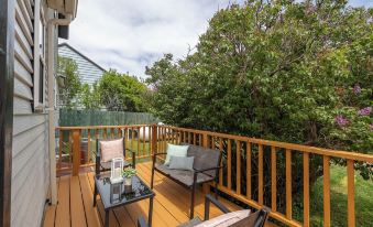 The house was great for our combined family. The amenities were amazing. Everything you may need is supplied, including extras like games, brochures & condiments. It was a cute, comfortable house to spend family time in. It was a little further from main st. than we thought & the steps needed a rail. Overall its a great place to stay.