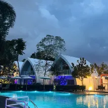 Tempat menarik. View cantik. Cuma panas sikit waktu siang. Buka aircond pun ada bahang sikit. Maybe material kabin tu serap panas. Tapi overall semuanya ok. Happy anak sebab buka sliding door je dah boleh terjun kolam. Buffet breakfast sedap, banyak pilihan. Berbaloi dengan bayaran.