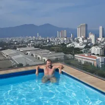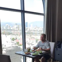 Бюджетный отель с завтраком, стоит своих денег, уборка каждый день, свежие полотенца и вода, есть завтрак, по качеству, среднестатистический по Данангу. На фото вид с крыши отеля, весь город как на ладони, приветливый персонал.
