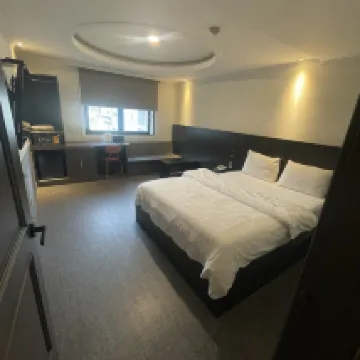 位在大邱地鐵城西產業園區站,7號出口出來步行10分鐘左右,交通方便,周邊環境清靜,附近還有CGV,適合夜貓子看電影,便利店、咖啡廳、餐廳很多~房間乾淨、熱水也夠熱,只是樓上如果動作太大,會有震動..整體來說算滿意~