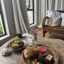 從入住到離開每一個細節都很棒的酒店,前台真的有問必答,而且真的很有耐心的在回覆我!推薦了很多好吃好玩的,客房整體是簡約風,白牆與原木搭配,乾淨又高級,不愧是設計師酒店,房間香薰超級好聞。整個公區被綠植包的滿滿的,還有無花果樹,可惜了還沒熟!早餐菜品有很多,問過服務員都可以點,種類多到吃不完的程度!退房贈送了可愛的鈴鐺伴手禮感覺也很有質感,下次有時間一定要多住幾天。