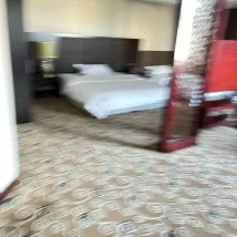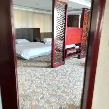 All the other reviews saying this place is clean baffle me (see pics). I have traveled a lot in China and this place is similar to other low-budget hotels that just haven’t been updated or properly taken care of since what seems like the early 2000s. Wallpaper and paint peeling everywhere. Stains on all the carpeting. Mold in the shower. I changed rooms twice to try and avoid the smell of cigarettes and it was in every room. Some areas of the walls in the room had dark stains from tobacco smoke. One day the elevator was down because rain water was just falling thru the ceiling into the elevator shaft. Made me doubt the safety of the elevators … The staff is friendly and accommodating but I’m not sure about their English skills as I speak Chinese. Location is in the heart of Wudang town and near plenty of small shops and restaurants and the museum, but a good 2km from the park entry for hiking the mountain. I found no trouble getting taxis around the hotel, however, and the ride to the park was ¥6-11 each time. It’s about ¥30-40 for a ride to Wudang West Station. Use the ride app Didi or its functions in Alipay/WeChat to get around.