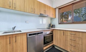 The residence, ideally and predominately suited to families, couples and travelling work colleagues, located on Level 2 of an Esplanade building, has a separate kitchen, dining and living area with a work desk.