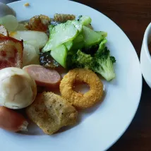 酒店總體還是不錯,也幫忙升級了房間,對有不大不小兩孩子來説比較友好,給了四份早餐。房間還是乾淨整潔的,樓層高的話可以遠眺大同古城,去的時候正好古城晚上有無人機表演,可以清晰看到
