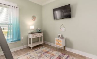 • NW Bunk Room offers a full-over-full bunk bed, dedicated TV, and easy access to the common bathroom, which features a shower-tub combo.