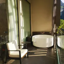 這個酒店真的超級超級無敵好,108 項暖心服務大氣上檔次,酒店的服務人員每一個都非常有禮貌,知道這個酒店讓你體會到貴賓幾服務,而且價格還不貴,性價比超級高,有免費的車接車送,餐廳雖然味道不是很好但是不滿意都給退了,做飲料那個服務生更是熱情服務,酒店環境也沒得説彷彿在熱帶雨林中,下午茶時間喝點茶水看着山景,真的很愜意,喜歡這裏,下回去還要住這個酒店。