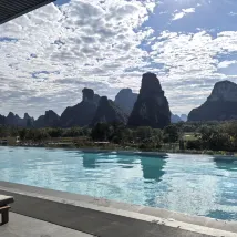 環境:酒店在山上,魚鱗壩旁邊,位置去哪都很方便。泳池最有特色,面朝山,可以看日出和晚霞。 設施:房間中規中矩,窗外是山野景色。酒店有自行車,可以免費騎行,出來酒店可以租**車騎行,出來酒店就是大片稻田,從酒店出發去打卡附近的幾家稻田咖啡也很方便。 餐飲:酒店內有餐廳,自助早餐,晚餐是點菜的,下午茶是增的免費自助。 酒店內活動也挺多的,有廣西民俗壯錦香包製作,篝火晚會,釣魚,晚上還有煙花。
