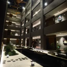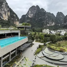 環境:整個酒店是靠山而建,風格是以廣西民俗為主題,酒店的裝飾從衣、食、住、行介紹了廣西的風俗文化,可以製作壯錦香包,離開時是贈送了糖都特產——兩罐黑糖,文化主題從進店至出店; 設施:房間空間標準,訂的房間涼台有個浴缸,2樓設有健身房,相對簡單,健身房旁可以自助洗衣乾衣,餐廳在4樓,窗外就是泳池,餐食整體還算不錯,懶得出行在酒店吃也是個不錯的選擇,5樓是最高點,可以俯瞰整個酒店,適合拍照; 衞生:客房、餐廳、酒店內堂、外圍衞生都比較乾淨,整體舒適; 服務:酒店員工服見面都會主動問好,酒店設有安曼跟拍服務,跟拍半小時3張照片免費,沒有因為免費就降低服務標準,預約—拍照—修片—選片流程清晰,服務標準化,客服、攝影師和選片師都很有耐心,想拍照的話可以試試; 要吐槽的一點就是酒店的空調系統不夠靈活,統一都是熱空調,每次進房,空調又挺智能的,自動開啟,怕熱的人記得自己把空調關了,另外晚上11點後掃碼購物顯示沒有東西,但是去前台能夠購買,就又挺不智能的,整體下來,還是滿意的。