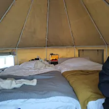 設施:非常棒的帳篷露營地,帳篷裏面暖氣很足,根本不用擔心會很冷。因為是露營地為主,所以衞生間和洗浴在一個小木屋,需要走一段路去。衞生間裏一直也有暖氣,水也很暖和。 衞生:帳篷裏面衞生很好,我們下午去剛好遇到阿姨在打掃衞生 環境:露營地不允許遊客進入,所以相對還是比較私隱,白茫茫的一片,很森林。我們住在a06、a07旁邊挨着一個玩雪的區域,所以早上會有點吵,不過對我們來説影響不大。 服務:管家式服務,有需要直接wx,點了圍爐煮茶,一邊看小朋友玩雪一邊跟朋友們喝茶聊天 對親子家庭真的很友好,遛娃看雪的好地方👍