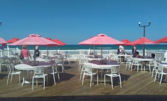 設施維護得很好,非常安全,每個外門(包括通往海灘的大門)都裝有電子鎖,並設有安全的室內停車場。它擁有常見的設施,如溫水游泳池(2024 年新建)、健身房、桑拿浴室、網球場、沙狐球場和籃球場。但我們最喜歡的是它的位置;它位於 Dunlawton 大橋以南,是 Daytona Beach Shores 的最佳位置。Sunglow 碼頭在步行距離內(您可以在上面的海灘圖片中看到它),海邊有一家餐廳,Crabby Joe’s。我們距離 Dunlawton 大橋以南約 ¾ 英里,距離 Ponce Inlet 燈塔以北約四英里;從公寓陽台也可以看到燈塔。幾個街區外有一家星巴克。