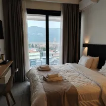Ottima pensione con ottima colazione a buffet. Le nostre camere erano di ampiezza accettabile, il bagno potrebbe essere migliorato. Avevamo un terrazzino con vista mozzafiato sul golfo di Corinto.