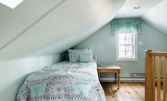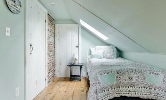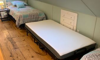 Sleeping loft with 2 twin beds, rollaway twin & ½ bath. Up a steep staircase so great for kids!