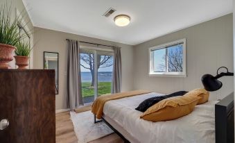 With 180 feet of lakefront access and a large lawn, your family and friends can unwind and relax on this beautiful property. The DNR boat launch is just blocks away and you are welcome to use our dock to bring your boat during your stay! If you're here during the winter months the lake freezes over beautifully for snowmobiling or ice-fishing and there are ski venues and snowshoeing trails close by! The living area has a smart TV, sound bar and large sliding doors with a stunning view of the lake. The entire home has been recently renovated with updated finishings throughout. The kitchen has everything you need to get started including many small appliances like a Crock Pot, Keurig and drip coffee maker, toaster and blender. The bedrooms have full size closets in each one, as well as comfy beds to get some rest after a long day on the water. There is a washer and dryer available for you to use during your stay!
