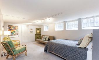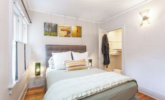 The whole house and private backyard are yours! The main level has two bedrooms (king and queen memory foam mattresses, down comforters and pillows and ample closet space), bathroom, office, kitchen, dining room and living area. The garden level basement has the laundry room w/ new, large washer and dryer, queen bed, pull out couch and storage areas. It also serves as a great rec room for kids! The front porch sits well above the street and is a great perch to watch the world go by or enjoy the large fenced-in yard and patio bbqing with sitting areas, beautiful plantings and soft grass.About pets:Pets allowed: dogs (limit 1 total).Contact host w/ animal request before booking.About checkOut:Check out before 11:00 AM.About children:Children allowed: ages 0-17.About checkIn:Check in after 4:00 PM.About smoking:Smoking is not permitted.About minBookingAge:Minimum age to rent: 28.About events:No events allowed.