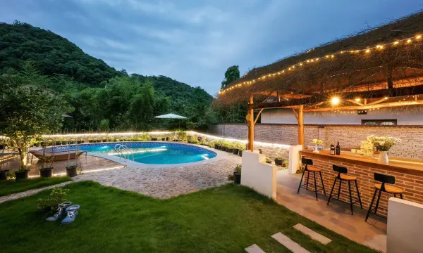 The guest house is close to a Main Street which gets a bit busy in the evenings. However, due to being tucked away behind another building, you don’t get any street noise and are able to experience some lovely nature and mountain views . The owners are super friendly and helpful if you need to get information about other local spots. The breakfast served is Local Chinese style. The pool is lovely though a bit small and not filled to the top. If you’re coming with pets, they’ll probably have good company, as quite a few dogs were there when we visited.