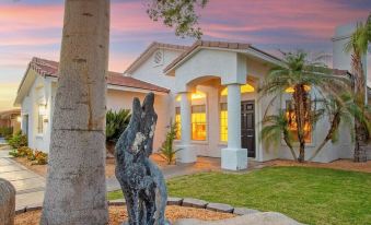 Located just a short drive from North Palm Springs' nightlife and Joshua Tree's natural splendor, our home offers a quiet elegance. You'll love this cozy 4-bedroom, 2-bathroom retreat if you like the calm of the desert sky, the excitement of nearby festivals, and the taste of fine dining.