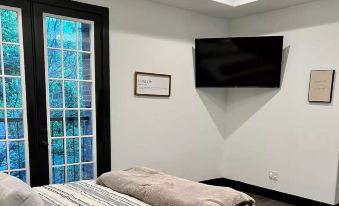 主臥室配有一張大號床和 55 英寸電視