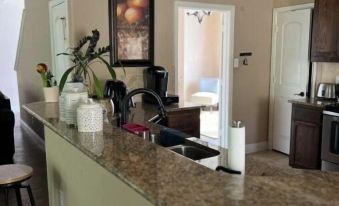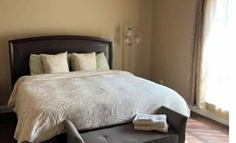 Welcome to our stylish and peaceful 4-bedroom house! Recently renovated, our home boasts high-quality furnishings, modern design, and tranquil surroundings. Relax in the spacious living room, cook in the fully-equipped kitchen, and enjoy a peaceful night's sleep in the comfortable bedrooms. With a backyard and easy access to local attractions, this is the perfect retreat for your stay in the city.