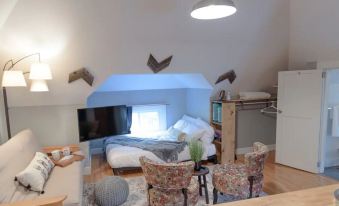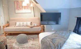 Super cute top floor apartment! Sweet surprises provided like a welcome note and treats upon arrival. Fully furnished with dishes and fluffy towels, oven & stove, pots & pans, even Tupperware for food to go with me to work. Lots of cozy seating options. I enjoyed very quiet nights and got great sleep in a comfy bed with perfect pillows and fluffy blankets.