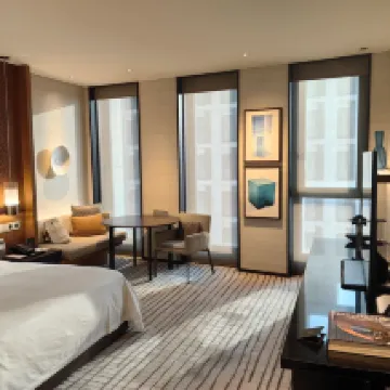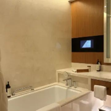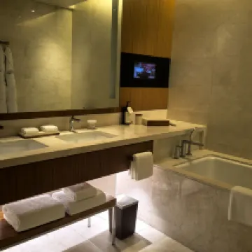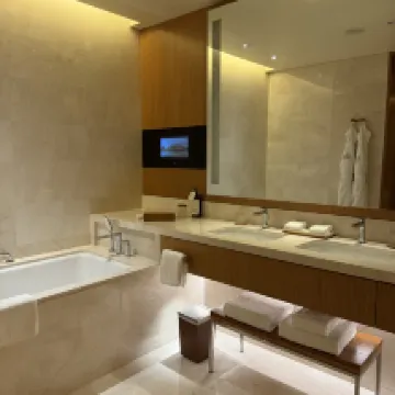 酒店整體的格調、環境非常贊!老錢風滿滿,體驗感很好。 在多哈住五星級酒店比國內都划算,900多元的城景房有40多平,浴室、洗漱空間較大,而且都做了乾濕分離。房間提供的免費茶葉、咖啡等等特別豐富! 自助餐廳特別漂亮,很有中東風情,紅色窗簾簡直是點睛之筆!前台好MAN,有品!服務也沒得話説,但是我們過去的時候碰上齋月,外面沒東西吃,中午在酒店吃的餐食,牛肉漢堡🍔200多元一個、一杯西瓜汁五六十元,重點是漢堡都不好吃。而且當時上菜速度巨慢,我們等了一個小時,最後發了脾氣才上來,這裏體驗感比較差! 其他都很好!推薦!