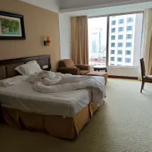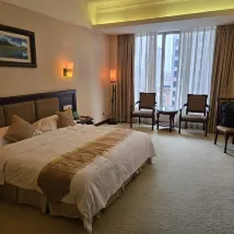 常平步行街四星級酒店,但亦是價格最高的一間,房間設計老舊,設備追不上時代,像90年的設計,但床仍很舒服,清潔衞生,景觀開場,有觀光電梯。早歺也算豐富,但不及旁邊那間酒店。整體來説,性價比不高。