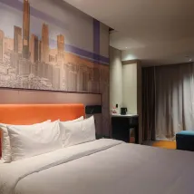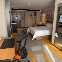 當天是凌晨2點才辦入住,前台小哥哥辦理得非常快,而且非常的親切,房間很不錯,床睡起來很舒服,廁所沒有異味,衣櫥還有衣架,酒店大堂也非常的有現代感,路引也非常清晰,在這個價格能訂到這樣的酒店真的是非常有性價比了,由於出門比較着急,忘記帶充電器了,前台小哥人非常貼心的拿了一個充電器,手機有電,安全感滿滿的,由於到得比較晚,小哥還特意幫忙延遲了退房時間,這個舉動就給人非常的貼心,第二天退房的時候兩名小姐姐也顯得格外的親切和專業,酒店有自己的停車場,非常的便捷,酒店附近吃的和玩的也挺多的,幾乎集吃,住,行,遊,購,娛為一體,是你出行的不二之選,大家趕緊來試試吧!