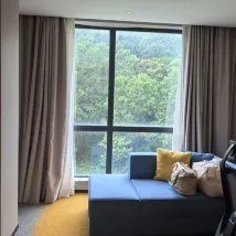 很舒服,很乾凈。旁邊就是公園,服務很好,早餐特別不錯。我們一家四口出行,1.2米的床有點擁擠,我不太喜歡他家洗手間,不夠檔次。