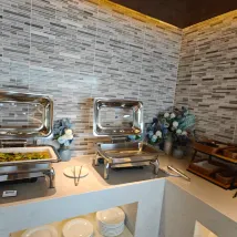 垃圾酒店,早上八點吃早餐,連續兩天都啥也沒有,接待大型團隊要做好準備啊,第一天已經告知前台狀況了,第二天早餐內容更少,全部被掃空
