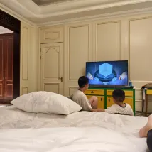 一次超乎預期的完美親子之旅 一次説走就走的旅行,第一次帶兩個寶寶來東營玩,沒想到一直下雨於是選擇了皇冠假日酒店,這次的入住體驗真的遠超預期,必須給個大大的好評! 最要稱讚的是前台Daisy汪欣小姐。辦理入住時,她看到我們帶着兩個年幼的寶寶,為我們免費升級了套房!這個驚喜讓我們旅途的疲憊一掃而空。Daisy的專業和熱情讓我們從抵達的第一刻就感受到了家的温暖。 升級後的套房非常寬敞舒適,大寶一進房間就興奮地滿場飛奔!房間佈置得典雅又乾淨,視野也很好。最重要的是,孩子在房間裏有了足夠的活動空間,酒店的淘氣堡也非常棒孩子玩的不亦樂乎。 這次入住讓我們真切感受到,皇冠假日酒店不僅在硬件設施上保持了高水準,更在人性化服務上做得特別出色。這種針對帶小孩家庭的貼心安排,極大地提升了我們的入住幸福感。 這次短暫的停留成為了一次美好的回憶。我們全家都已經把這裏列為東營的首選酒店,下次來一定還會住在這裏!強烈推薦給所有帶寶寶出行的家庭!