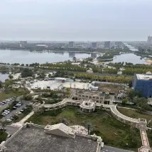 酒店周邊有湖水,有別墅,雖然路途遠但東營沒有那麼大,還是很方便,到東營勝利機場大概20分鐘車程,酒店環境很好,裝修不錯很新很高大上,細節很到位,服務很好,房間很大很乾凈很精緻配套很好,住的很滿意!