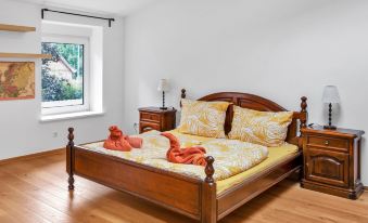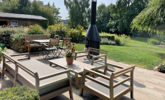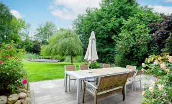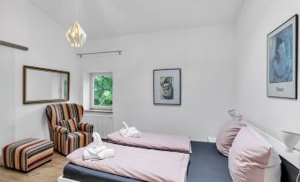 Very modern, luxurious house. On the outskirts Drochtersen, 46 km from the sea, 22 km from the lake, 6 km from the beach, 6 km from the river. Private: natural state property 2'500 m2 (fenced), beautiful garden to relax, natural pond. Table tennis, fireplace. In the house: sauna, table tennis, central heating system, washing machine, tumble dryer. Parking (for 3 cars) on the premises. Supermarket, bakery 100 m, bus stop 500 m, sandy beach "Strandoase Krautsand" 6 km. Nearby attractions: Hansestadt Stade 21 km, Wingst 30 km, Cuxhaven 59 km, Hamburg 70 km. Well-known lakes can easily be reached: Kreidesee Hemmoor 22 km. Part of the house is closed and unoccupied. "Elbdomizil", 5-room house 180 m2 on 2 levels. Luxurious and stylish furnishings: open large living/dining room with open-hearth fireplace and satellite TV (flat screen). Exit to the garden, to the terrace. 1 room with 1 sofabed and 1 double bed. 1 room with 1 double bed. Large, open kitchen (5 ceramic glass hob hotplates, toaster, kettle, microwave, electric coffee machine, cooking island). Shower/WC. Heating. Upper floor: 1 room with 1 double sofabed and 1 double bed. 1 room with 1 double bed. Bath/shower/WC, Sauna. Large garden. Terrace furniture, barbecue. Of the garden. Facilities: Internet (DSL/LAN, free). Please note: non-smoking house. Maximum 2 pets/ dogs allowed. Smoke alarm. Bed layout is flexible. There are more sleeping options available than the maximum number of people allowed which may, however, not be exceeded.