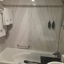 Breakfast buffet was great. Wide selection of food. Nice bathroom interior.