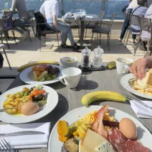 酒店大堂寬敞明亮,視野超棒!有好幾個室外泳池,還能下海游泳,不過十幾度的天氣海水還是挺涼的。房間夠大,設施齊全,可惜衹住一晚,沒有足夠時間享受酒店的泳池、躺椅和曬曬陽光浴。從酒店打車到古城衹需十幾分鍾,或者選擇公交6路也很方便。早餐品種豐富,美味可口。 酒店點餐性價比不高,打包了個漢堡要20歐,好在新鮮出爐,量大管飽,味道也還行。 另一個比較遺憾的地方是,酒店沒能滿足我們延遲退房的要求,可能入住率還是挺高的緣故吧! 整體住得滿意,在杜布羅夫尼克度過了愉快了一天。