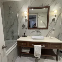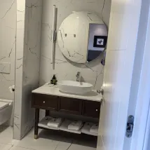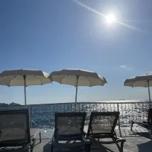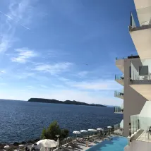 從此克羅地亞🇭🇷的行程比較寬鬆也比較糾結,一個是想乘坐渡輪玩,一個是想自駕遊。攻略做了許久但是實操上出現一個交通大BUG,就是斯普利特去馬卡爾斯卡的渡輪需要6月中旬才有航班,所以臨時調整交通方式自駕,隨後又取消了科爾丘拉的酒店,重新再增加一晚杜布羅夫尼克的酒店。這家位於島上最西邊的皇家系列酒店作為備選臨時預訂,最終出奇的好,收貨了滿滿的幸福。 環境: 非常漂亮,位於杜島最西面的盡頭,酒店270度臨海,因為遠離oldtown,所以周邊環境很安靜,全海景無死角。 衞生: 五星級標準,很乾凈,四個泳池也是水質清澈,二樓平台的泳池還是難得的温水池,終於可以暢遊了。 設施: 這次攜程必須表揚,臨時預訂卻給了一個超出預期的房間,五樓(最高層)最頂端的海景房,感覺足足比一般房間大了十個平方,視野開闊,房間寬敞,陽台兩側無任何遮擋,感覺直接升級了行政樓層。除了洗澡那個半遮擋設施容易水漫金山以外,基本滿分。洗浴用品也是歐舒丹,非常高級。 服務: 給了一個大大的房間當然大大的點讚了,入住和退房都很方便,門口停車也OK,按照規定是10歐元一天,checkout的時候直接付cash即可。 總的來説,酒店還是很滿意的,這個酒店也是當地royal系列中位置最好的一個。