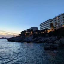 儘管這家飯店距離舊城區有一段距離,但這並不是什麼壞事。昆蟲我非常感激能夠遠離擁擠的人群和噪音,並且非常享受這個美妙的度假村的寧靜和壯觀的海景。絕對值得為 C 面朝的房間多付點錢,因為可以欣賞到白天和夜晚令人驚嘆的全景。 我的房間裝潢典雅,非常舒適,有足夠的空間放置所有物品,不過行李架或指定的行李空間會大大提高整體舒適度。 工作人員整體來說都很樂於助人且彬彬有禮,特別要感謝餐廳經理 Matija,儘管要接待大量顧客,他仍然保持著愉快和充滿活力的態度。 按照歐洲標準,自助早餐非常豐盛,而自助晚餐的選擇也相當豐富,而且每人 35 歐元的價格非常超值。 正如先前的評論中所提到的,有巴士連接巴賓庫克區(皇家阿里斯頓酒店及其鄰近的姐妹酒店皇家公主酒店、皇家藍酒店、皇家棕櫚酒店和海王星酒店均位於此處)和老城區。如果您購買價值 40 歐元的杜布羅夫尼克城市通票,您可以享受一天的巴士旅行,還可以進入城牆和博物館。 強烈推薦這個度假村,期待再次光臨。