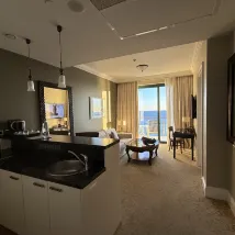 這是一家非常不錯的酒店,位置在一個半島頂端,直接靠海,有一線海景,有三家旗下酒店沿着海岸,海景房都面向大海,住酒店的兩天都在陽台上看日落,非常漂亮,我們住的套房房間很大,有主卧、客廳、兩個衞生間,吧枱,美式風格有些復古,但維護的非常好,房間床品舒適,每天枕着海浪聲入睡,很舒服,酒店有幾個餐廳,早餐品種豐富,自助晚餐品種齊全,但都是歐式風格,有收費的停車庫,從電梯直接到酒店房間。酒店離老城有點距離,有bus可以直達,自駕比較方便。